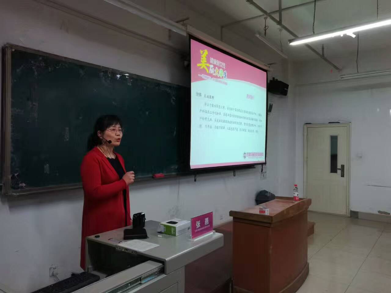 4月25日晚,兰州文理学院外语学院团委及青年志愿者协会联合甘肃玛丽亚妇科医院组织开展的“青春飞扬、健康相伴”女大学生健康知识系列公益讲座在教学楼五楼电教室举行。讲座由甘肃玛丽亚妇科医院青年妇科医生张燕主讲,来自外语学院及青协的女大学生认真聆听了讲座。