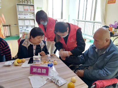 " 奶奶,测血糖的时候扎针有点疼,您忍受下哦,很快就好!