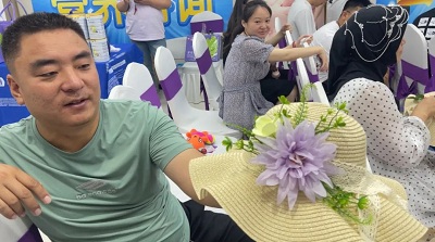 动若脱兔,静若处子。如果说参与游戏的孕妈妈的表现是动若脱兔的话,那么参与手工制作的孕妈妈就表现得静若处子。手工区,心灵手巧的孕妈妈们正在静静地做着手工——DIY手工草帽。