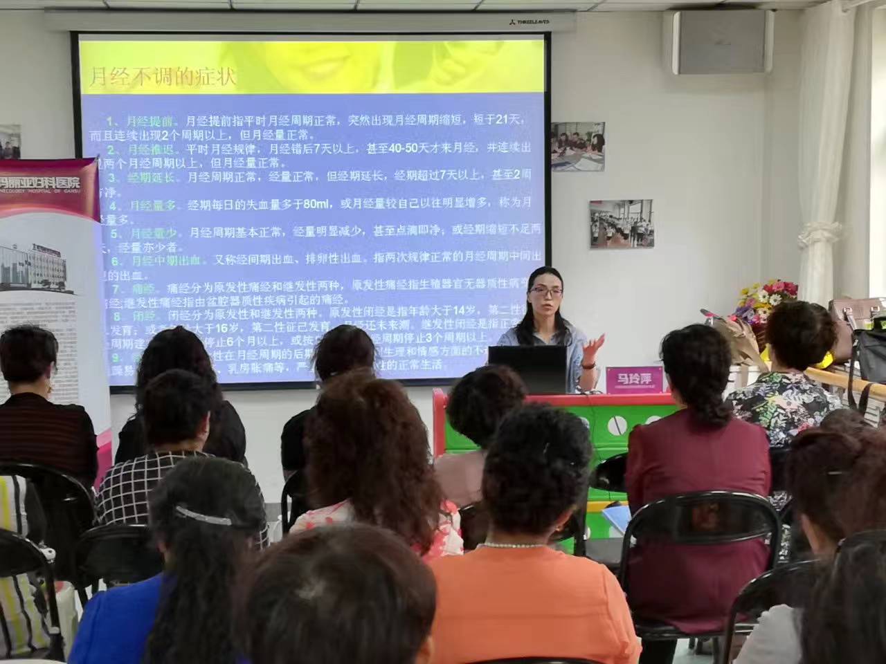 马玲萍医生结合多年的临床实践及典型病例,根据现代女性常见病及多发病的特点,针对性的讲授了女性常见病(阴道炎、月经不调、宫颈疾病、盆腔炎、宫外孕、多囊卵巢综合征、子宫肌liu、卵巢疾病、不孕症、乳腺疾病)的临床症状、疾病危害、预防治疗;讲授了艾滋病的传播途径及预防;女性健康日常保健;女性健康体检的重要性等等。