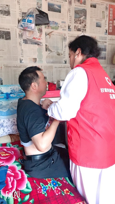 由于受资助的贫困大学生家庭大部分是因病致贫,此次助学公益行玛丽亚医院特地组织了医护团队。有四十年临床经验的中西医结合科孙淑娴主任为受助家庭中的老人进行了查体、听诊、开具了处方,并针对病情送上了药品,随行的护理人员对老人做了简单护理。